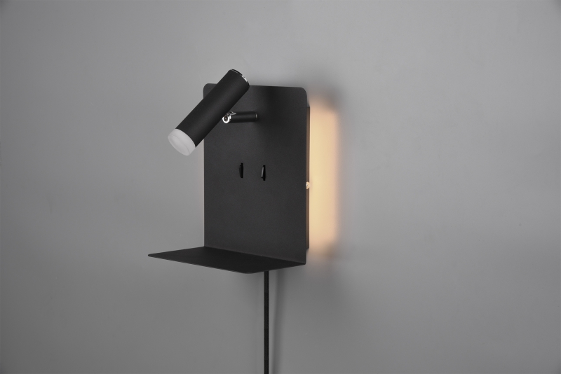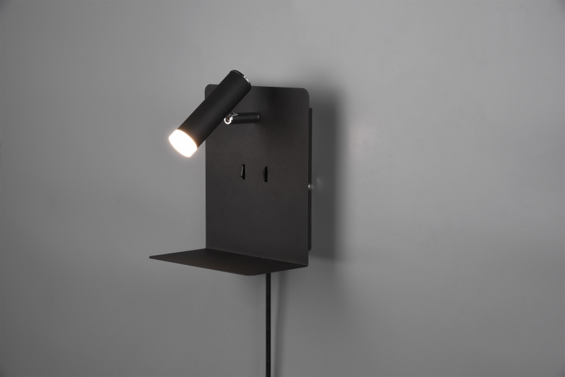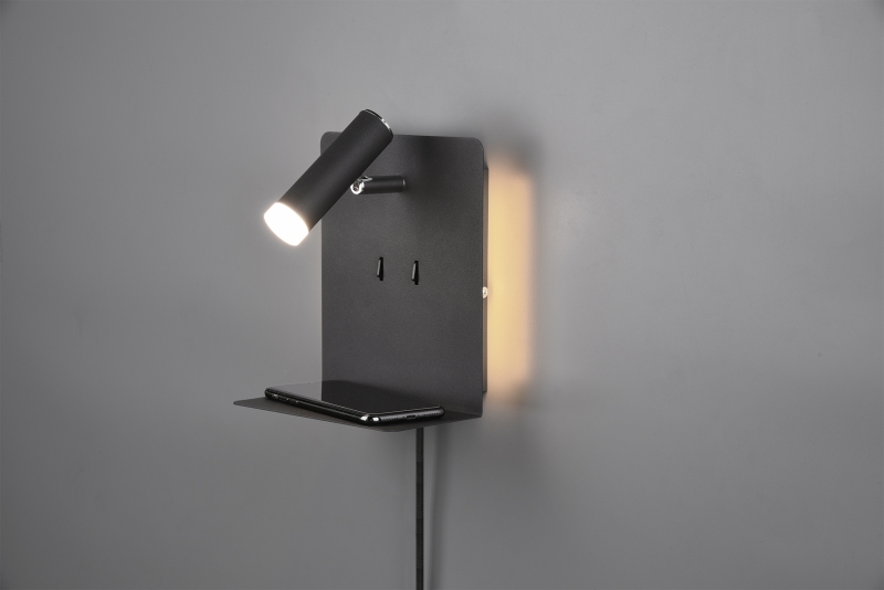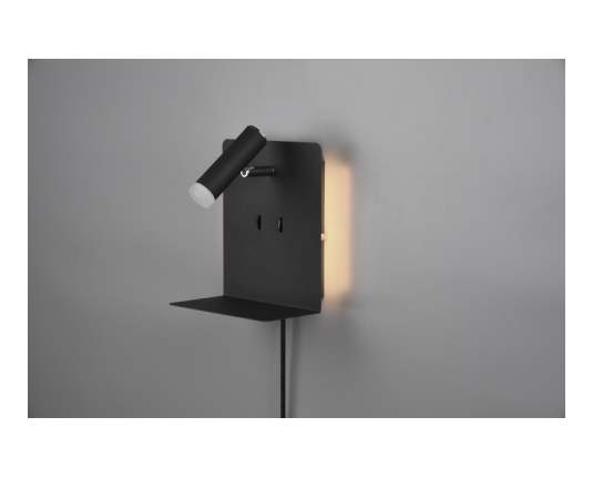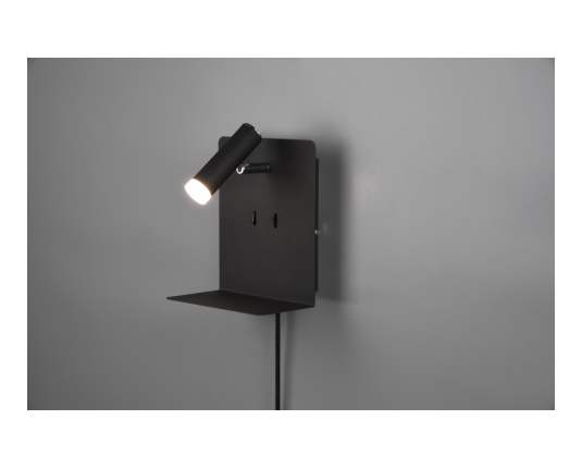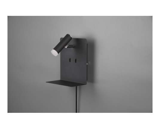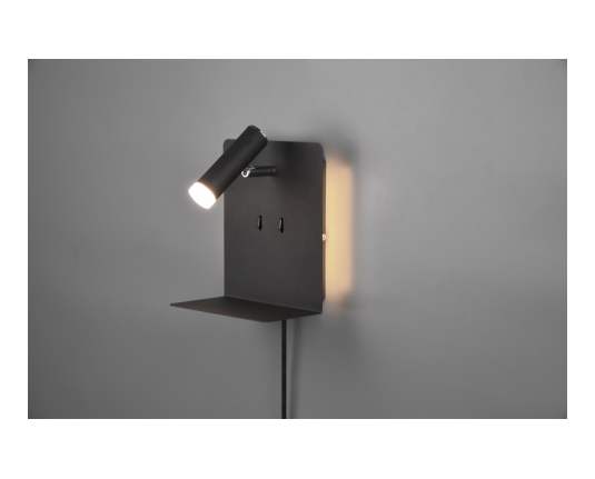 TRIO 222570232 ELEMENT stenska svetilka LED črna 1x3W 1X240LM + 2x1,5W SMD 2X120LM+ USB