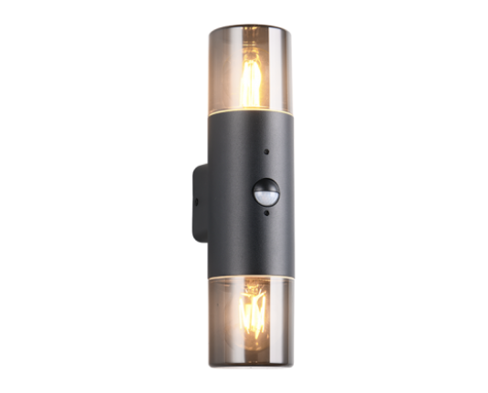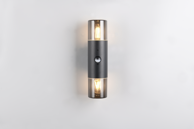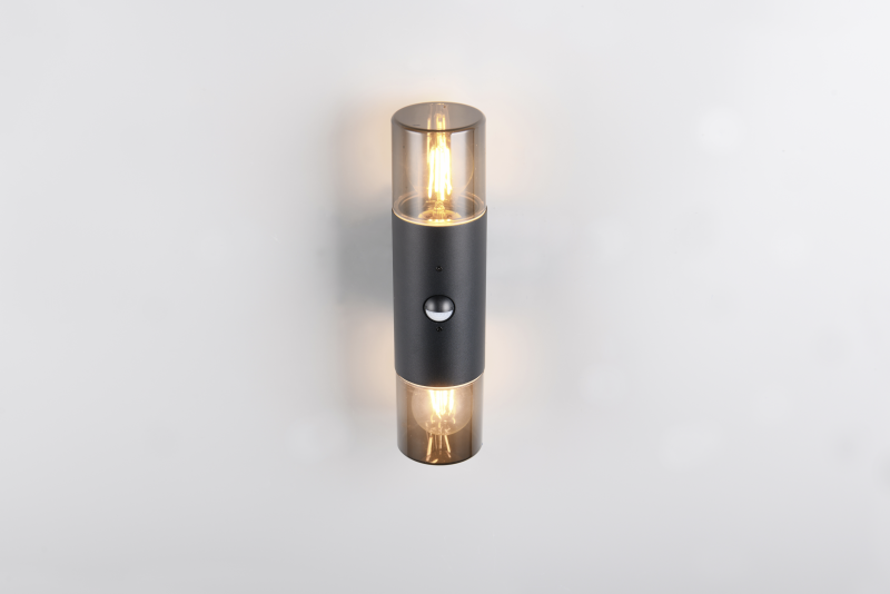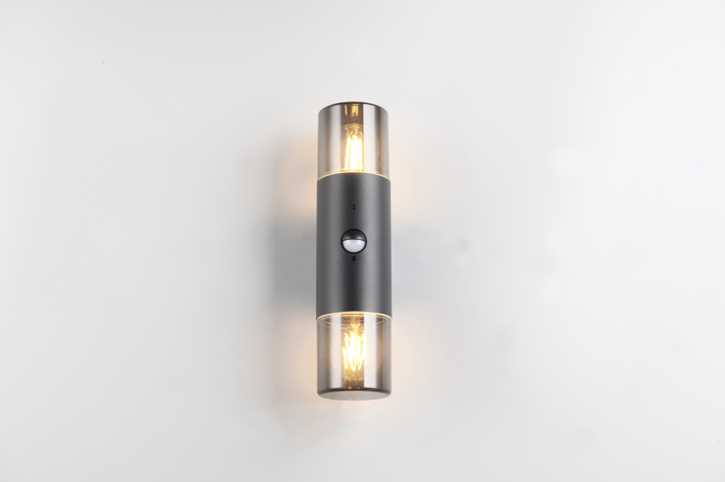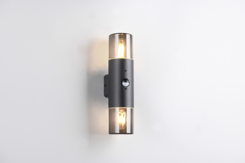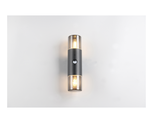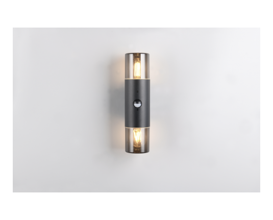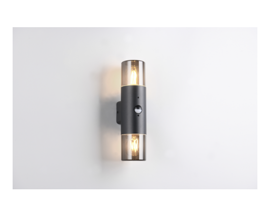 TRIO 222260232 HOOSIC stenska svetilka črna 2x max.28W E27 Senzor gibanja