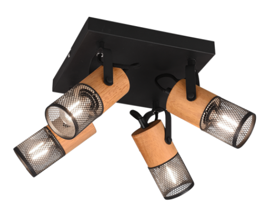 TRIO 804300432 TOSH četvorni reflektor črna/les 4x max.40W E14